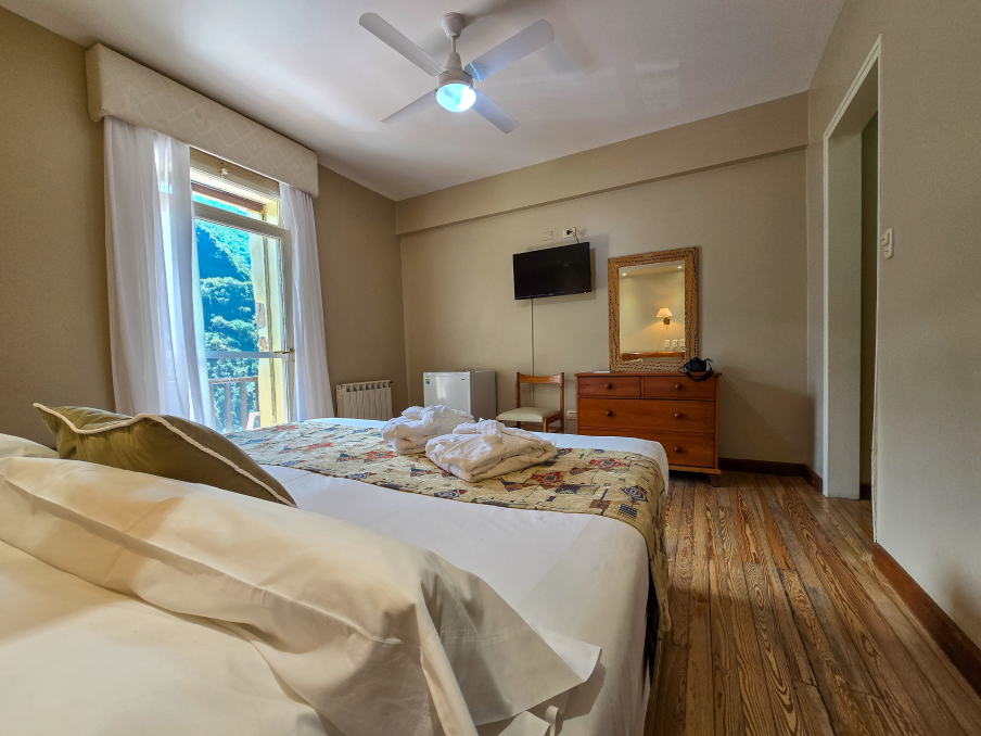 Disfrutá de un balcón privado con vistas únicas al río y las colinas. Una habitación amplia que combina comodidad y un paisaje de ensueño, perfecta para relajarse y desconectar.